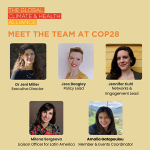 For those attending COP28, the GCHA is coordinating daily briefings to help our members and the wide health community connect and share information. Reach out to Jen Kuhl, Network & Engagement Lead, to connect with fellow members, and Jess Beagley, Policy Lead, for policy and advocacy coordination.Â