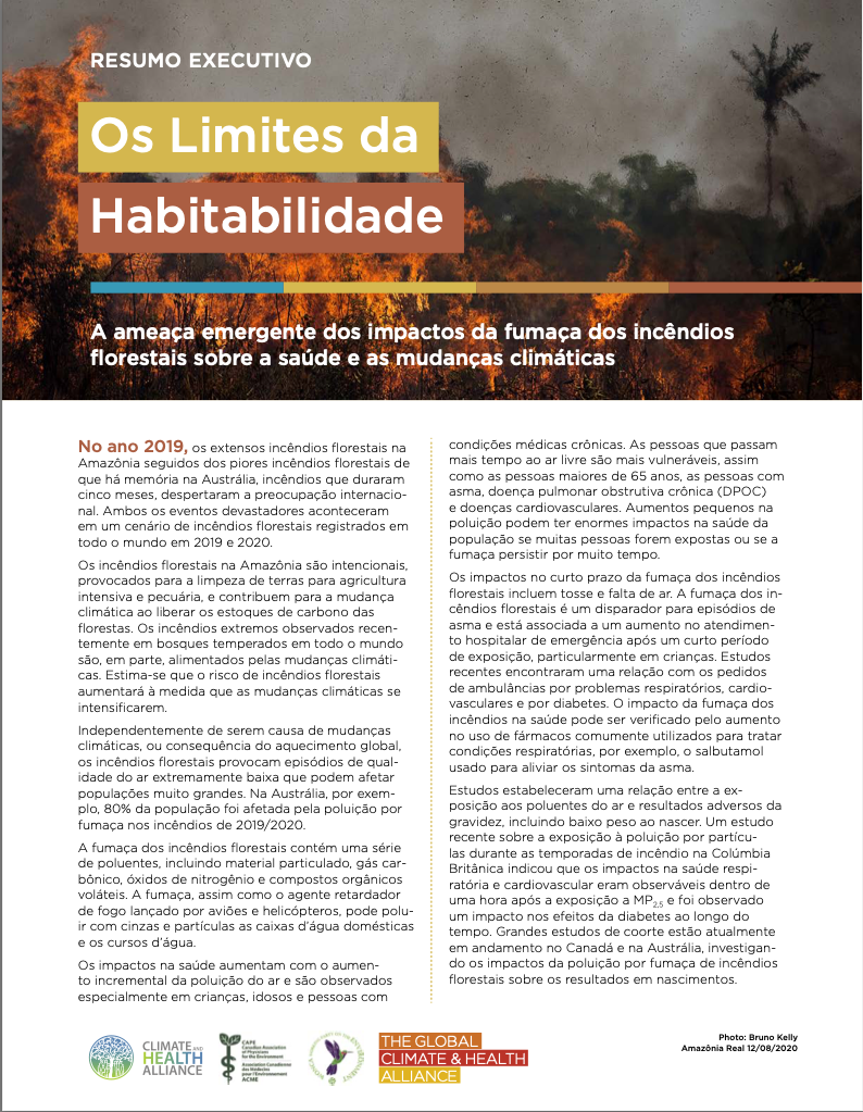 This report, developed in collaboration with the Climate and Health Alliance in Australia, the Canadian Association of Physicians for the Environment in Canada, and the WONCA Working Party for the Environment, whose chair is based in Brazil, looks at the health impacts of forest fire smoke, with case studies of major recent fires in each country and interviews with in-country researchers, experts, and medical professionals. A number of recommendations emerge for ways to better prepare for and respond to the health threat of wildfire smoke.