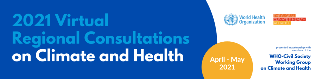 In April, May and October of 2021, the WHO-Civil Society Working Group on Climate and Health, co-chaired by WHO and GCHA, together with the WHO Regional Offices, and other health partners, hosted a series of six Regional Consultations, one in each of the WHO regions. The aims of these consultations were to: