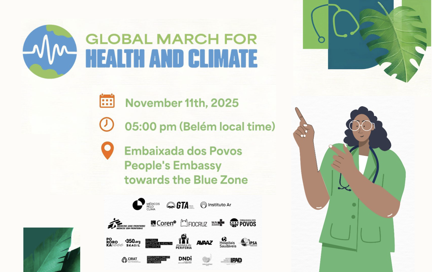 Invitamos a todo el personal sanitario y a la sociedad civil organizada a unirse a la marcha para demostrar que la salud y la justicia climática van de la mano y que VIVIR BIEN es un derecho de todos. Esta marcha está coorganizada por GCHA.