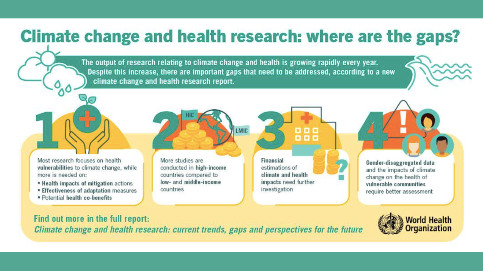 The Research Subcommittee reviewed climate and health research published in the past 10 years, and published Climate change and health research: current trends, gaps and perspectives for the future as an update of WHO’s 2009 research priorities paper